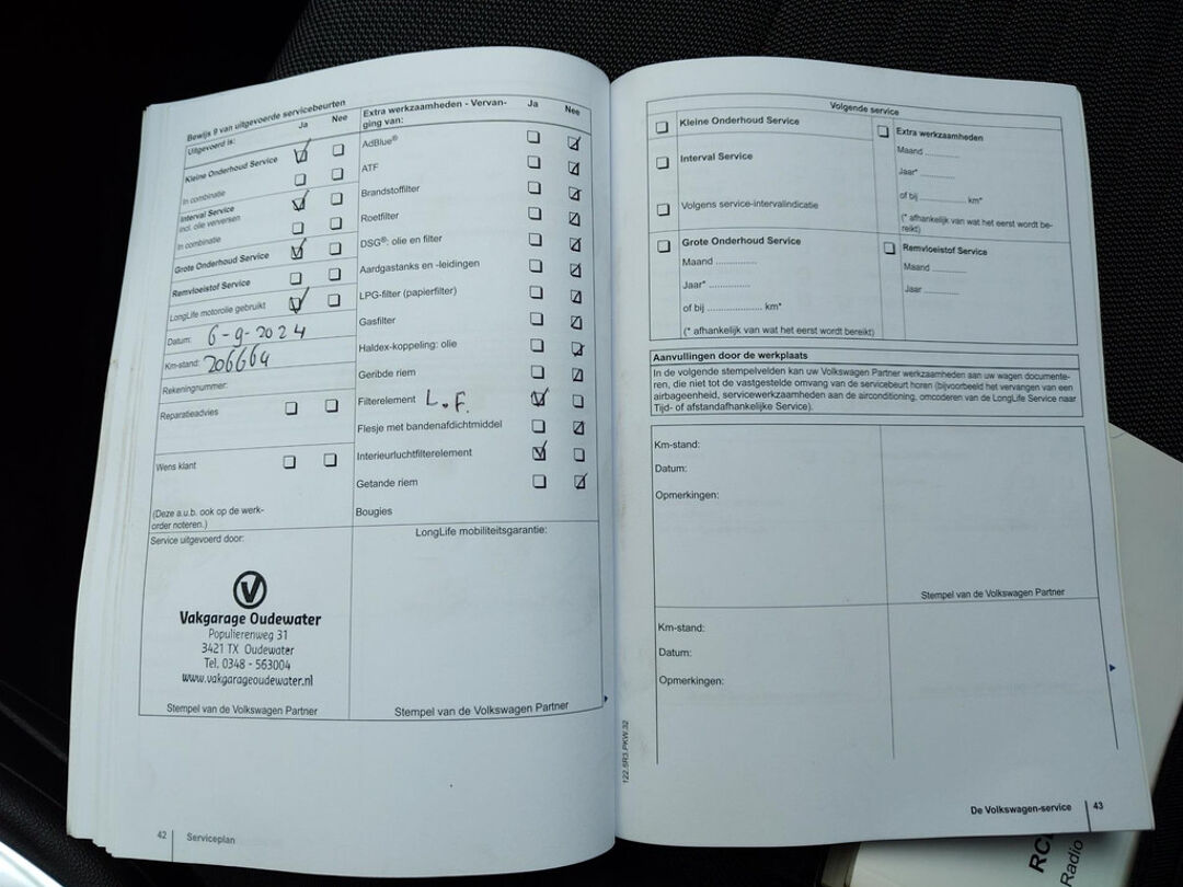 De auto krijgt een grote onderhoudsbeurt en nieuwe APK, u krijgt 6 maanden garantie en een jaar gratis pechhulp in heel Europa.